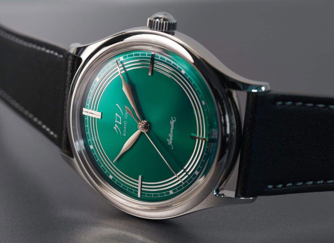 The Kurono Anniversary Green ‘森:Mori’ continues the iconic art-deco design introduced by celebrated watchmaker Hajime-sensei, with its single-piece dial encased beneath a high-curvature box-sapphire crystal that mimics acrylic glass of the past, and provides a unique light-play. ‘森:Mori’ represents our effort to go back to a state of contemplation and restfulness - after recent launches of more complex watch designs - to our philosophy of humble beauty in simplicity.