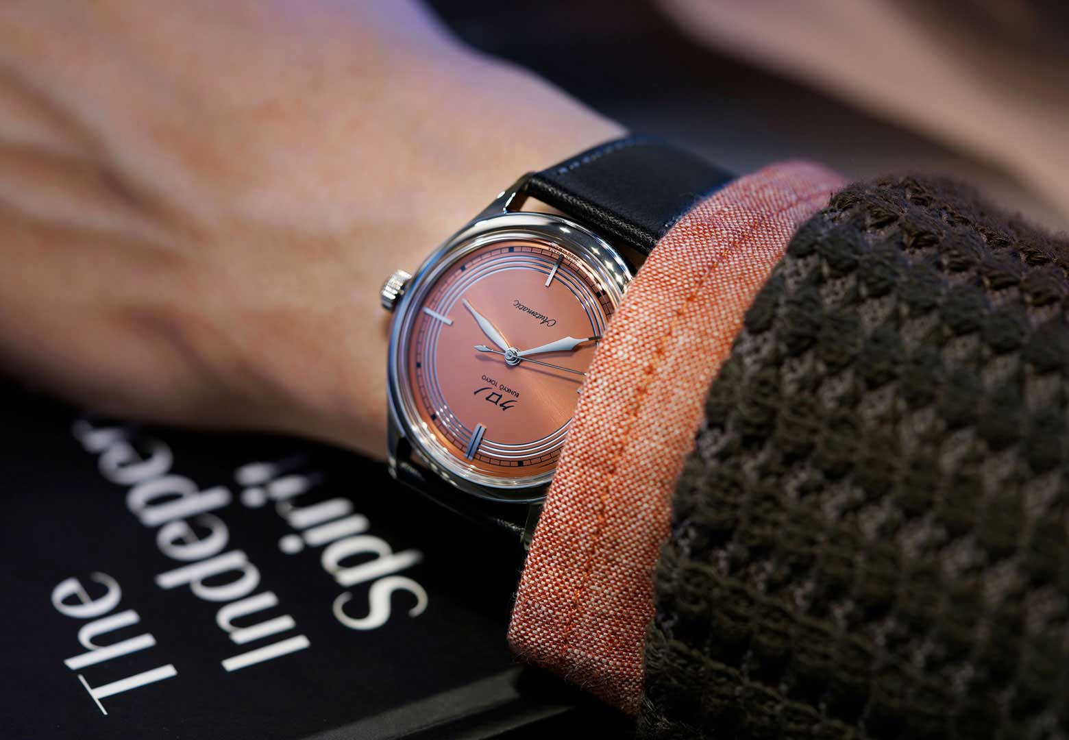 The final color was unpredictable as the shade constantly changes depending on the thickness of the paint and can only be seen after it is physically applied. After myriads of samples and experimentations with different thicknesses and mixes of paint, Hajime-sensei continued to work on fine-tuning the gloss layer as well as other aspects of the watch till it matched his standards. In white light the purplish-coral hues of the dial take centerstage, while in yellow light its golden hues are accentuated making it look less playful and more refined.