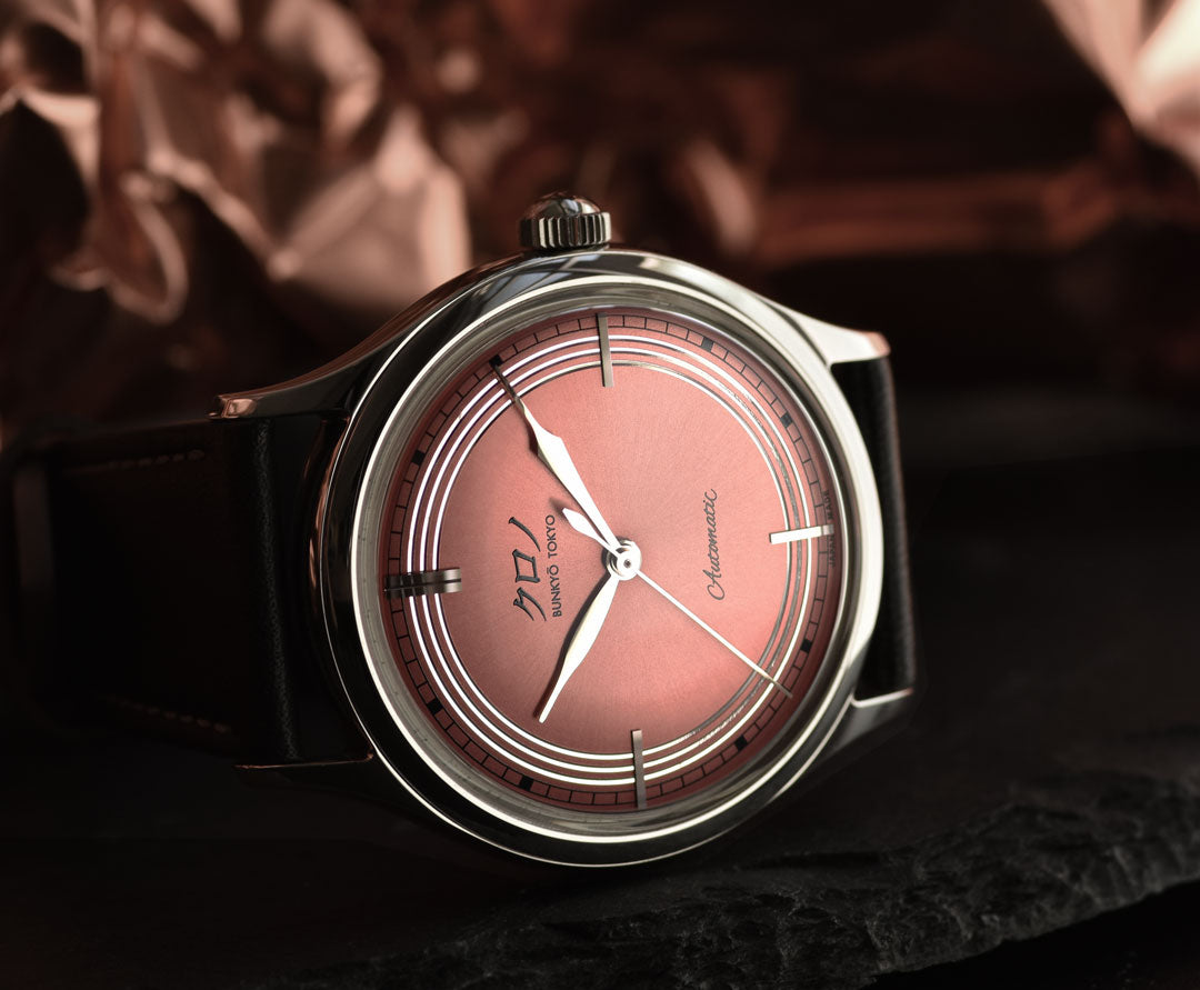 Hajime Asaoka-sensei had a specific aim to create a color that was as unique as possible to Japanese culture, and differentiate itself from the typical 'salmon'-shade dial popular amongst watchmakers in the West. The color of the dial was inspired by the Japanese crested ibis, an auspicious bird with feathers of a shade akin to that of a rising sun, and is regarded as a symbol of happiness and good fortune. Hajime-sensei based the concept of the anniversary watch and the color of the dial off this subtle grace and allure, and aspired to portray this sentiment through his craft.