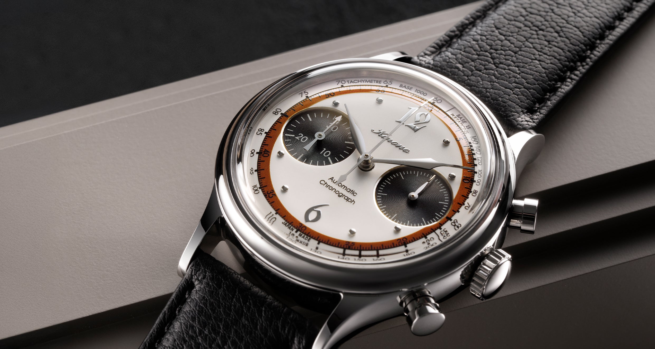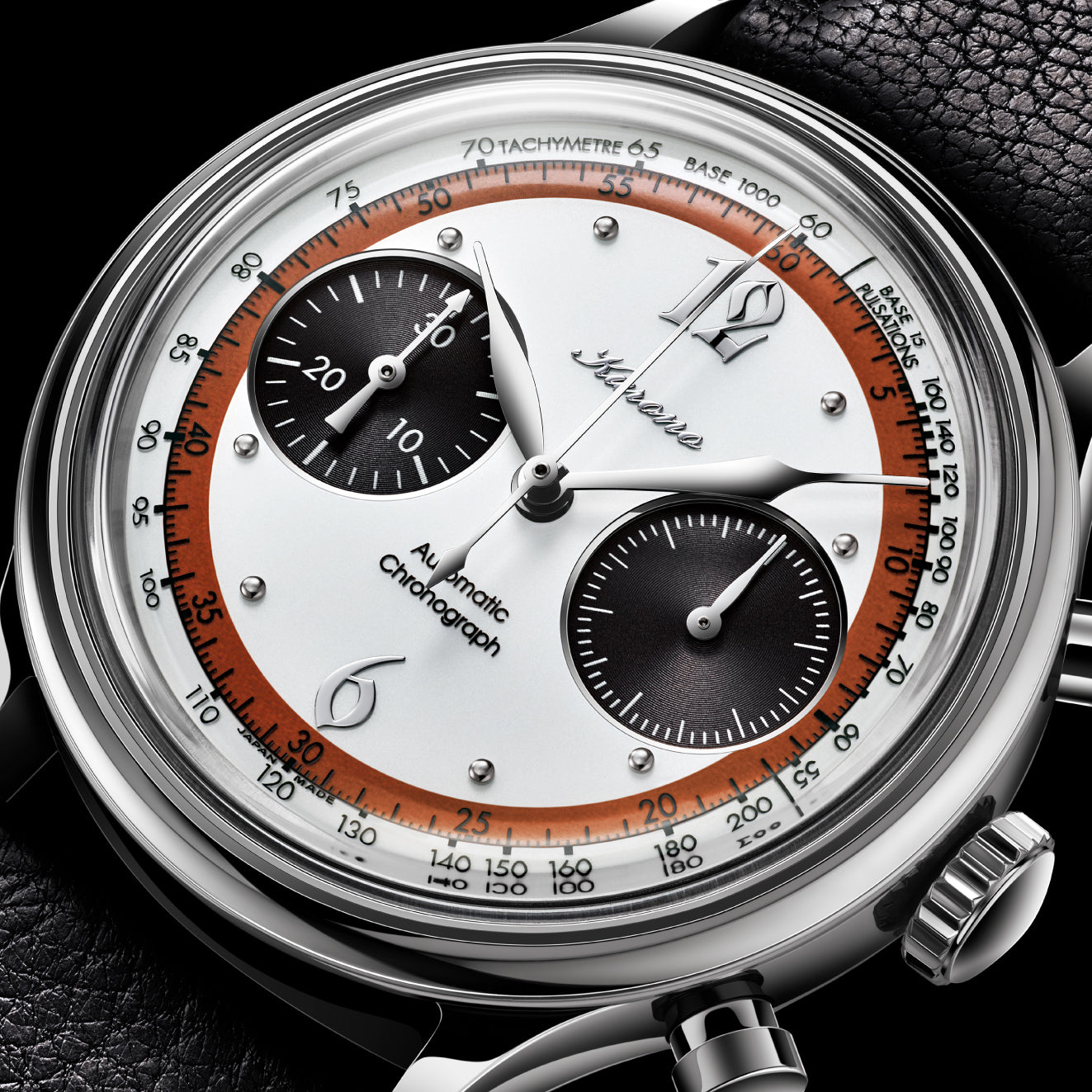 The different shapes of all hands is a device used in the high-end chronographs of the 1950s and 1960s, which Hajime-sensei is fond of.