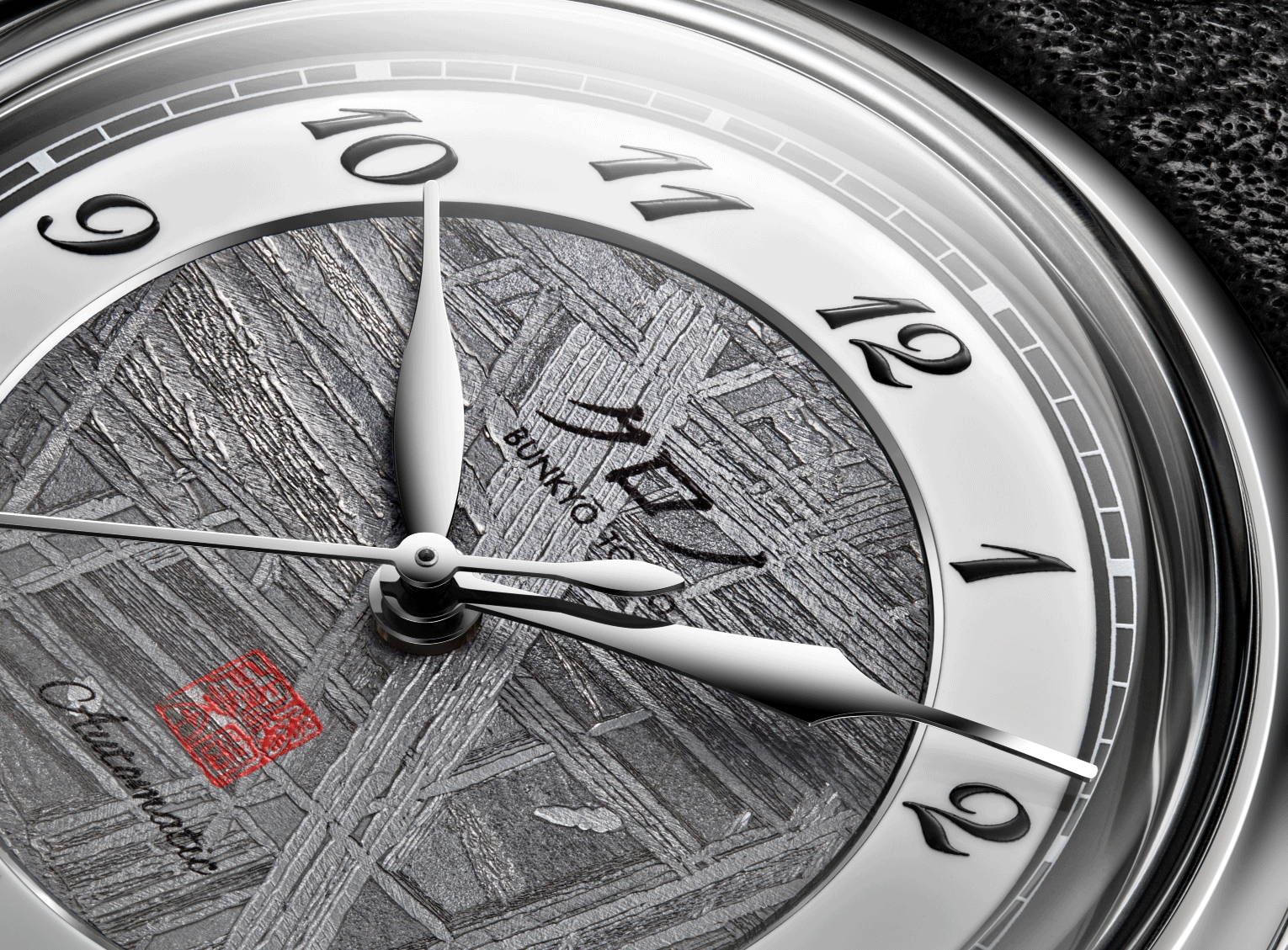 "Adorned with Kanji hour-markers and chrysanthemum-wave guilloché."