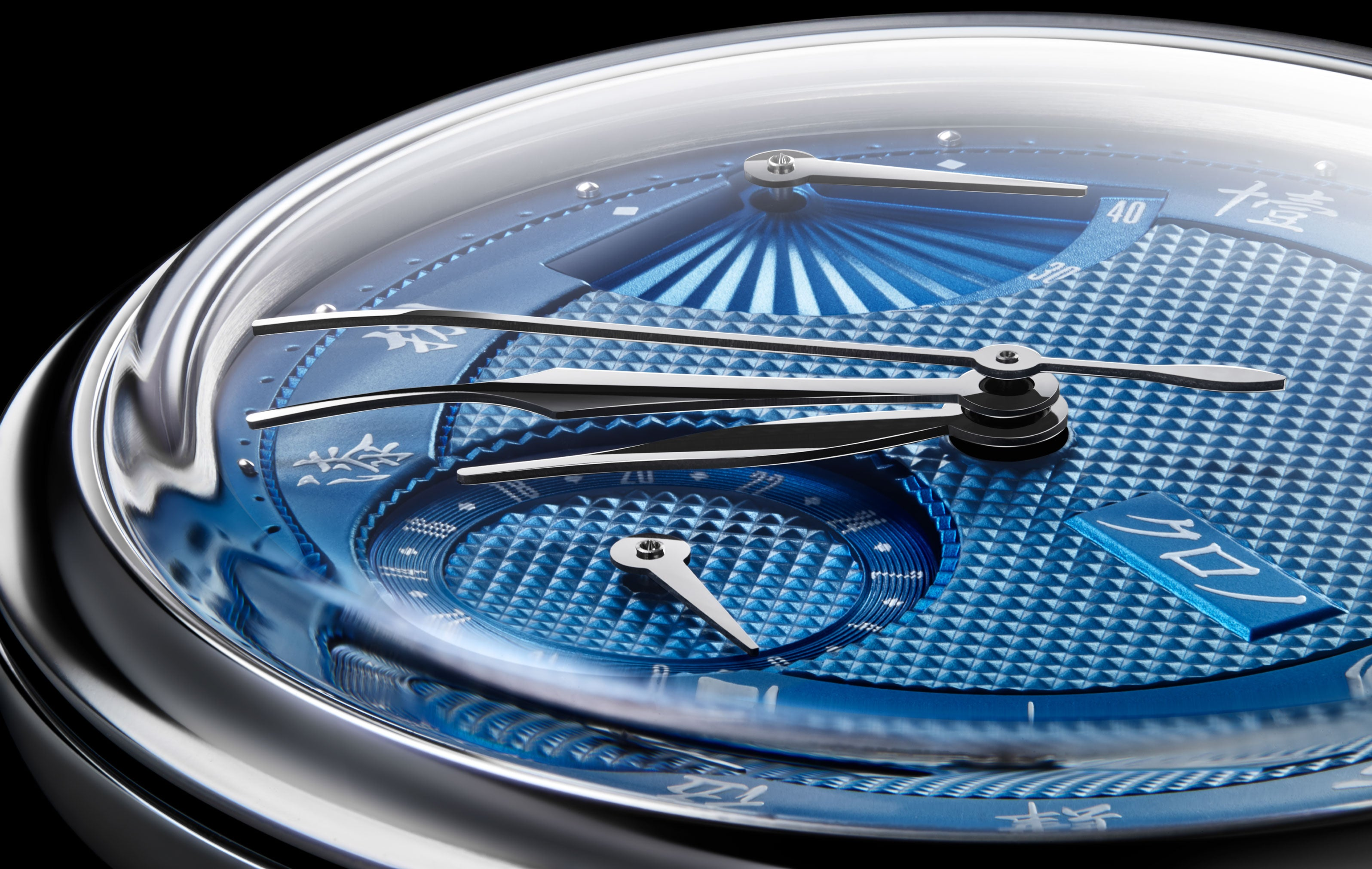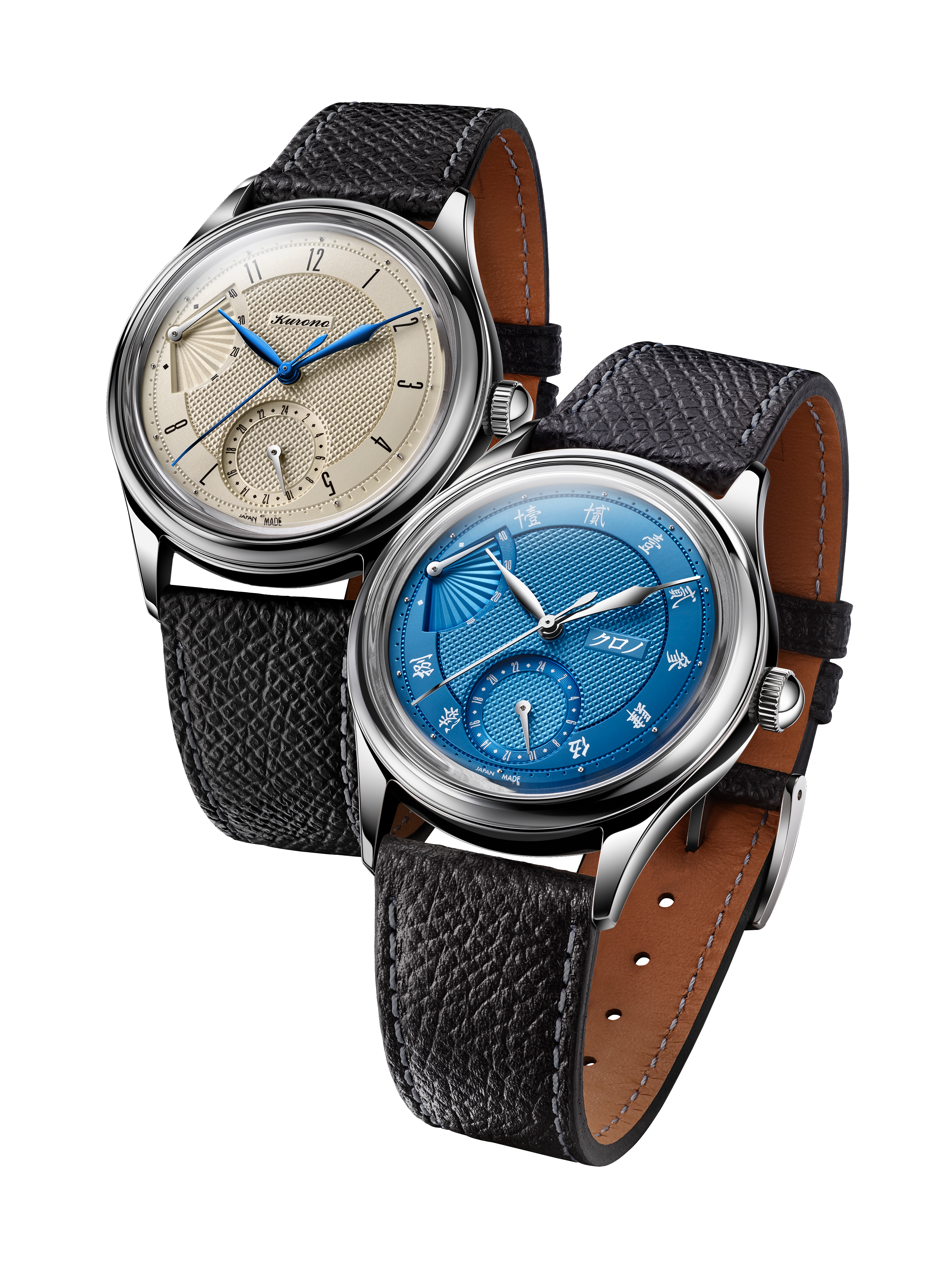 The new Special Projects ‘SENSU NOS’ features Hajime Asaoka’s unique interpretation of the classical guilloché-dialed watch with an art-deco flair. At the power reserve indicator, Hajime-sensei incorporated a guilloché pattern mimicking a folding Japanese fan (扇子 : sensu). The ‘sensu’ pattern is complemented by Clous de Paris in the main and 24-hour inset dials, with circular guilloché graining at the seconds periphery. A thin guilloché railway-track is leveraged as demarcations, complemented by inset minute-markers and high-polish studs as hour-markers. The look is finished with relief-printed hour numerals in Arabic for the Cream, and Kanji for the Blue respectively.