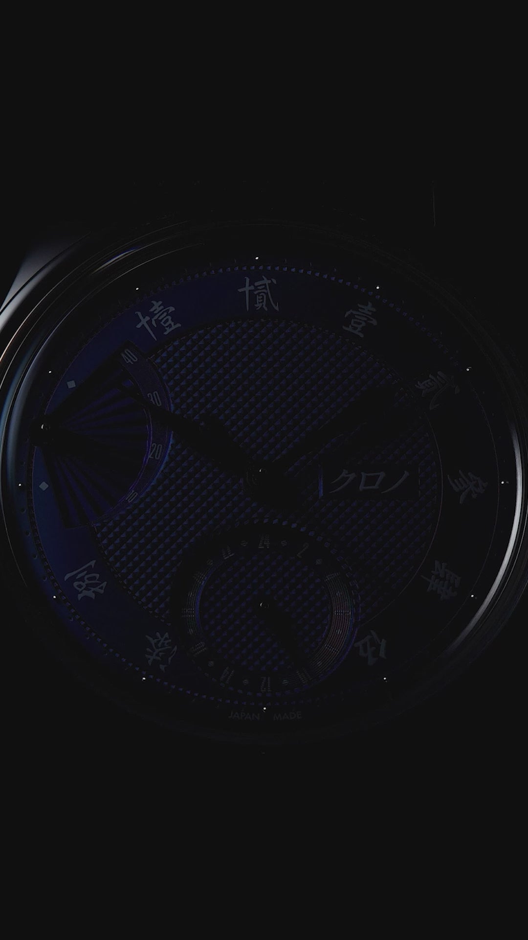 The ‘SENSU NOS’ in blue offers a window into Japanese heritage with its Kanji hour markers. These logographic characters form the core of the Japanese writing system and are artistically rendered in Hajime-sensei's signature calligraphy style. Positioned at 3 o’clock, the Kurono Tokyo logo deviates from the conventional 12 o’clock placement.